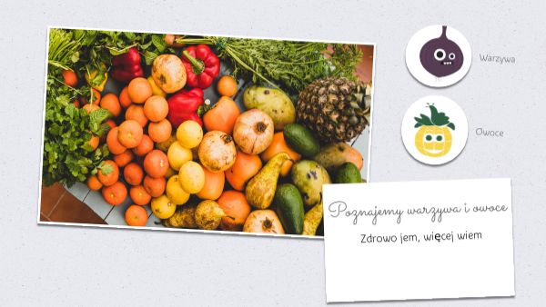 Warzywa i owoce są źródłem wielu witamin i składników mineralnych. Najlepiej jeść surowe warzywa i owoce, bo zachowują wtedy najwięcej ważnych dla nas składników odżywczych. Spożywaj warzywa 5 x dziennie. Warzywa mają mało kalorii, a dużo składników odżywczych, dzięki nim mamy smukłą sylwetkę, piękną cerę i dobry humor.