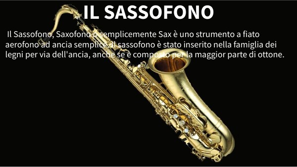 Il Sassofono, Saxofono o semplicemente Sax è uno strumento a fiato aerofono ad ancia semplice. Il sassofono è stato inserito nella famiglia dei legni per via dell'ancia, anche se è composto per la maggior parte di ottone.