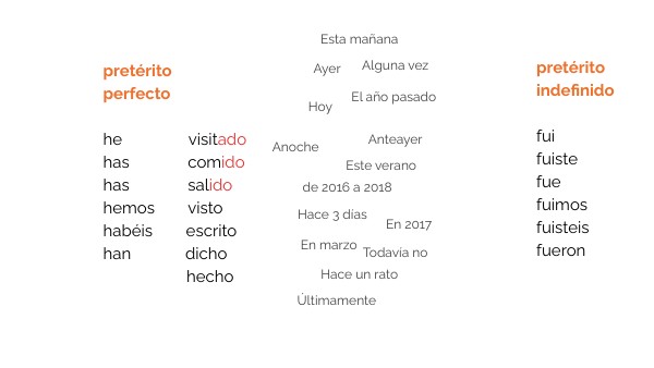pretérito perfecto he visitado has comido has salido hemos visto habéis escrito han dicho hecho