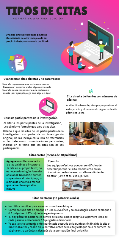 Infografía sobre las clases de citas de acuerdo a la Normativa APA 7ma. Edición