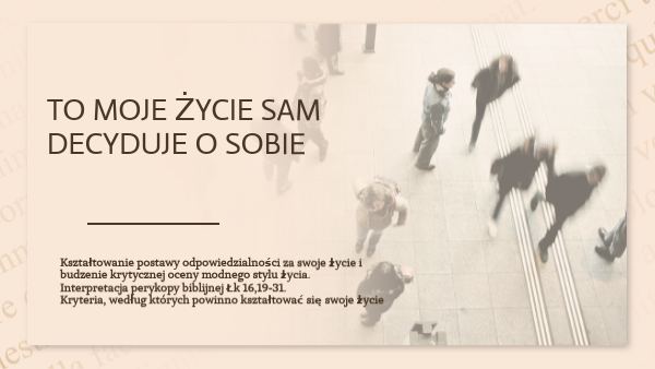 Kształtowanie postawy odpowiedzialności za swoje życie i budzenie krytycznej oceny modnego stylu życia. Interpretacja perykopy biblijnej Łk 16,19-31. Kryteria, według których powinno kształtować się swoje życie