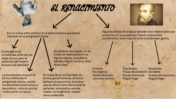 Se divide en dos etapas, en las cuales se redescubrieron las figuras clásicas, se exaltó la belleza y figura humana, entre otras cosas