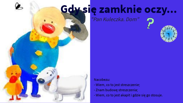 Nacobezu:- Wiem, co to jest streszczenie;- Znam budowę streszczenia;- Wiem, co to jest akapit i gdzie się go stosuje.