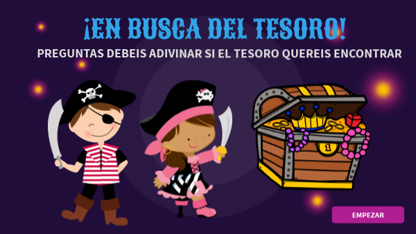 HOLA, YO SOY LA PIRATA "MALAPATA" Y VENGO A DECIROS QUE PARA ENCONTRAR EL TESORO TENEIS QUE RESPONDER MUY BIEN A UNAS PREGUNTAS. ¿ESTÁIS PREPARADOS? ¡AL ABORDAJE AMIGOS!