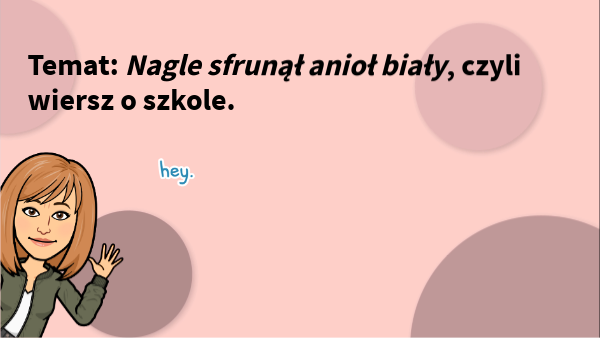 Temat: Nagle sfrunął anioł biały, czyli wiersz o szkole.