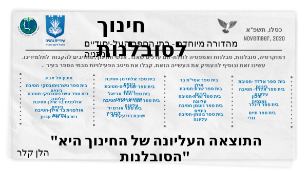 .דמוקרטיה, סובלנות, סבלנות ואמפטיה לזולת- הם ערכים שאנו , אנשי החינוך, מחויבים להקנות לתלמידינו. עשינו זאת ונוסיף להעמיק את העשייה הזאת. קבלו את מיטב הפעילויות מבתי הספר בעיר