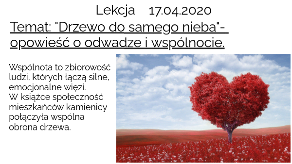 Temat: "Drzewo do samego nieba"- opowieść o odwadze i wspólnocie.