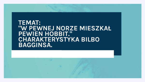 Temat:"W pewnej norze mieszkał pewien hobbit." Charakterystyka Bilbo Bagginsa.