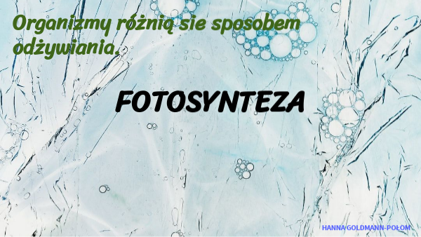 FOTOSYNTEZA- TO SPOSÓB ODŻYWIANIA SIĘ ROŚLIN