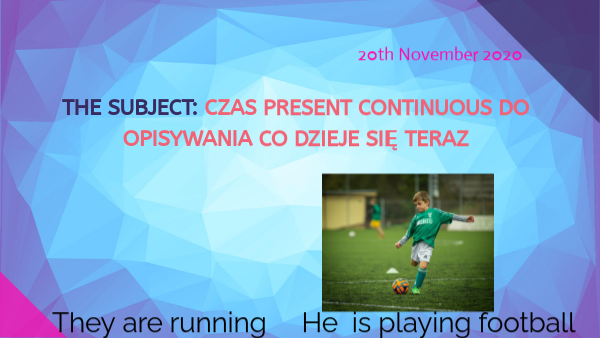 THE SUBJECT: Czas present CONTINUOUS do opisywania CO DZIEJE SIĘ TERAZ