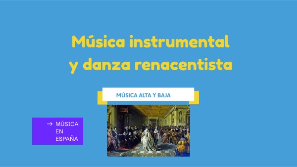 Todavía no existe la orquesta tal y como hoy la conocemos, pero los instrumentos se dividían en:MÚSICA ALTA: los de mayor potencia sonora y que son para tocar al aire libre. De viento y percusión. MÚSICA BAJA: de intensidad suave, para tocar en espacios interiores. De