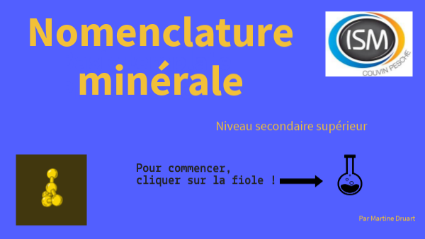 Pour étudier ou revoir la nomencalture minérale des acides, hydroxydes, oxydes, sels et ions