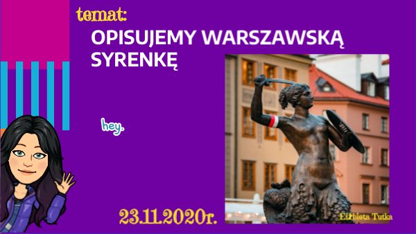 Cel: - opiszę warszawską Syrenkę. Kryteria sukcesu: - porzadkuję zdania opisujące pomnik warszawskiej Syrenki zgodnie z planem, - wyszukuję czasowniki w zdaniach, - tworzę czasowniki od rzeczowników.
