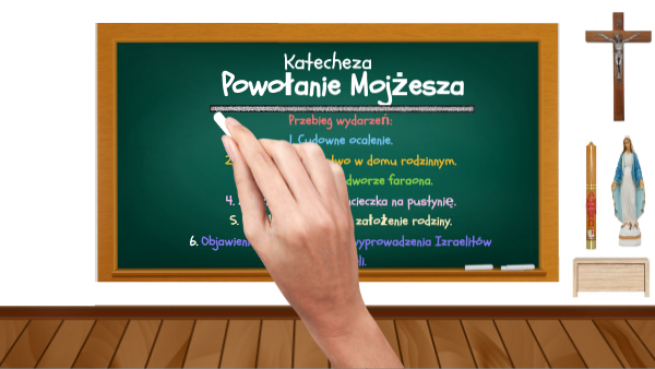 Przebieg wydarzeń: 1. Cudowne ocalenie. 2. Wczesne dzieciństwo w domu rodzinnym. 3. Wychowanie na dworze faraona. 4. Zabicie Egipcjanina i ucieczka na pustynię. 5. Pobyt u Madianitów i założenie rodziny. 6. Objawienie Boga – polecenie wyprowadzenia Izraelitów z niewoli.