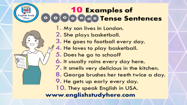 He, She, it = Verb 1 + S 4. Tali swims every week. 5. Ron usually plays tennis 6. The giraffe lives in the jungle.