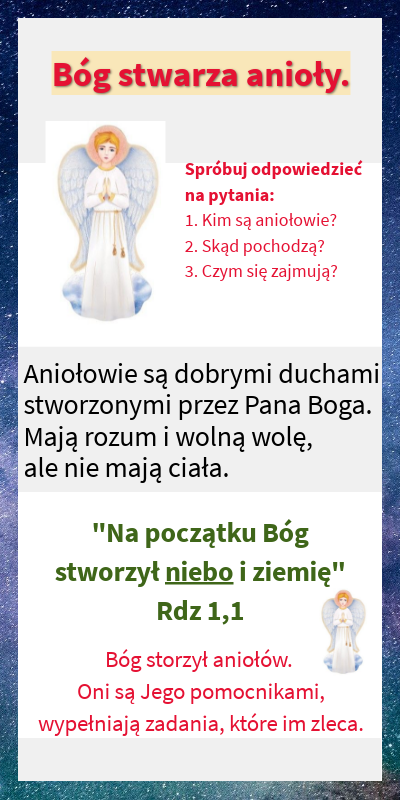 Spróbuj odpowiedzieć na pytania:1. Kim są aniołowie?2. Skąd pochodzą?3. Czym się zajmują?