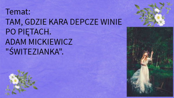 Temat: TAM, GDZIE KARA DEPCZE WINIE PO PIĘTACH. ADAM MICKIEWICZ "ŚWITEZIANKA".