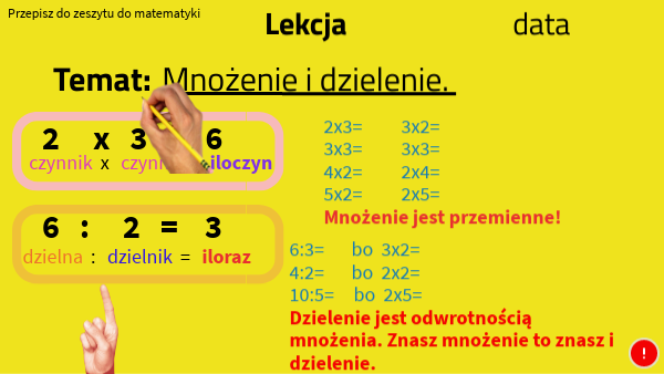 Pamiętaj! Każda liczba pomnożona i podzielona przez 0 daje 0. 1x0=0 5:0=0