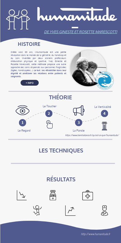 Créée voici 30 ans, l’Humanitude est une petite révolution dans le monde de la gériatrie, du handicap et du soin. Inventée par deux anciens professeurs d’éducation physique et sportive, Yves Gineste et Rosette Marescotti, cette méthode propose une autre approche des soins dispensés aux personnes fragilisées (âgées, handicapées…). Le but : les réhabiliter dans leur dignité et améliorer les relations entre patients et soignants.