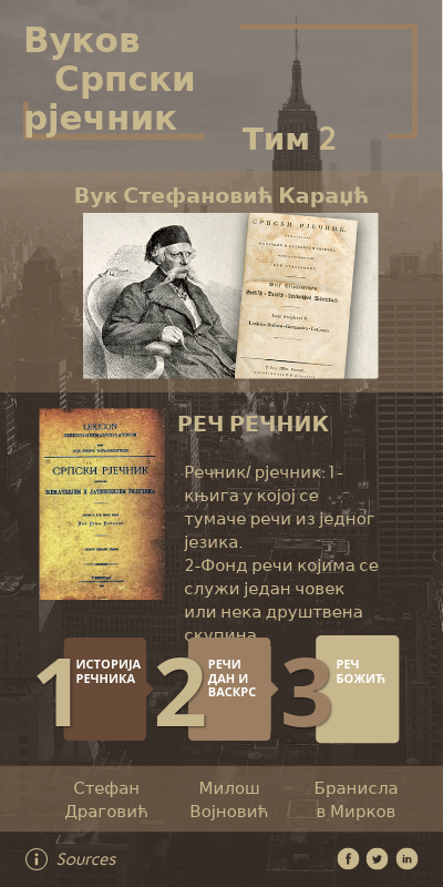 Рјечник је синтеза целога Вуковога рада. У њему су заступљене све гране његове делатности: и филологија и етнологија, и историја и народне умотворине. Овај речник народног језика, превод "Новог завјета" (1847), и збирке народних умотворина представљали су темеље за савремени стандардни српси језик.