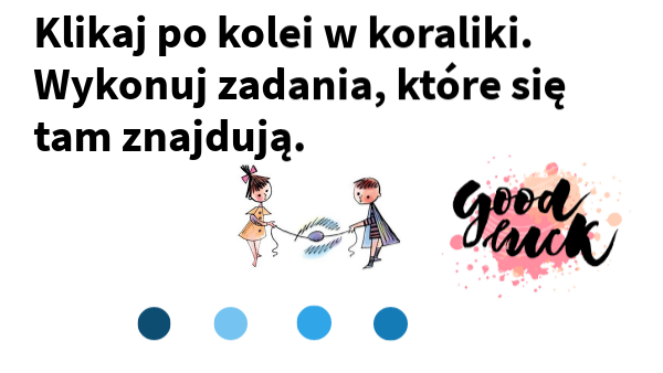 Klikaj po kolei w koraliki. Wykonuj zadania, które się tam znajdują.