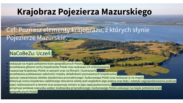 Cel: Poznasz elementy krajobrazu, z których słynie Pojezierze Mazurskie.