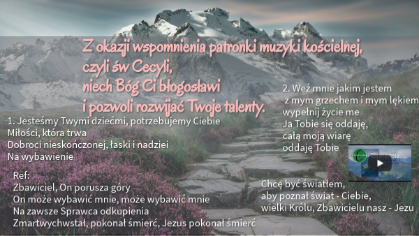 Z okazji wspomnienia patronki muzyki kościelnej, czyli św Cecyli, niech Bóg Ci błogosławi i pozwoli rozwijać Twoje talenty.