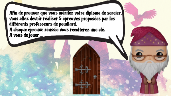 Afin de prouver que vous méritez votre diplome de sorcier, vous allez devoir réaliser 5 épreuves proposées par les différents professeurs de poudlard. A chaque épreuve réussie vous récolterez une clé. A vous de jouer ...