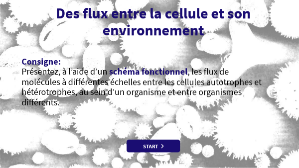 Consigne: Présentez, à l’aide d’un schéma fonctionnel, les flux de molécules à différentes échelles entre les cellules autotrophes et hétérotrophes, au sein d’un organisme et entre organismes différents.