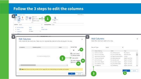 Follow the 3 steps to edit the columns