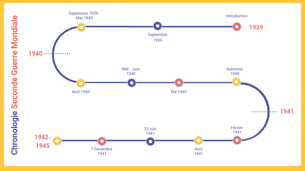 Après la montée des totalitarismes en Europe dans les années 1930 et suite à la crise financière mondiale de 1929 qui fragilise l’économie européenne, la SGM semble inévitable. Cependant, les démocraties occidentales qui demeurent tentent, tant bien que mal, de préserver une paix. Elle semble pourtant plus que jamais factice. Avec le soutien des populations, les gouvernements français et britanniques pratiquent l’immobilisme -politique d'attente et de non-intervention, ici sous prétexe de la paix- , au point de trahir des anciens alliés dont le territoire est envahi par Hitler (Tchécoslovaquie, Autriche, etc.). Cependant, le 23 août 1939, l’équilibre des puissances s'inverse avec l’accord diplomatique passé entre Berlin et Moscou : le pacte germano-soviétique. La Pologne est envahie et les démocraties réagissent enfin : c’est la seconde guerre mondiale. Nous pouvons dès lors nous demander quelles sont les principales batailles et principaux événements qui ont constitué cette Seconde Guerre Mondiale. Ainsi, si le début de la guerre représente un nombre important de défaites pour les Alliés, nous verrons que la tendance va se renverser et que cela va permettre aux démocraties occidentales : les Alliés -composé principalement des Etats-Unis, du Royaume-Uni et de l'Union Soviétiques appelés les trois grands et de la France - de reprendre l’ascendant sur leur ennemi : l'Axe - composé principalement de l'Allemagne, l'Italie et le Japon.