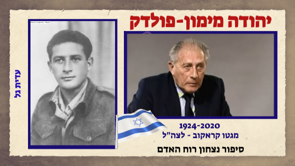 סיפורו של יהודה מימון (פולדק) שנולד ב-2 בפברואר 1924 וגדל בעיר קרקוב, פולין. חבר תנועת "הצופה" ואחר כך "עקיבא". שמשפחתו הושמדה בשואה. חבר המחתרת הלוחמת "החלוץ הלוחם" שהשתתף במשימות רבות ומסוכנות, כמו "ליל ציגנריה" 22.12.1942 פעולת המרד הראשונה שבוצעה על ידי מחתרת בפולין. נתפס במרץ 1943 ובאפריל 1943 נשלח למחנה הריכוז אושוויץ 3, שם הצטרף למחתרת הקומוניסטית שפעלה בשטח המחנה. עם תחילת צעדת המוות ב -18 בינואר 1945 הצליח לברוח. פעל במסגרת "הבריחה" והצטרף לקבוצת "נקם"- בפיקודו של אבא קובנר.