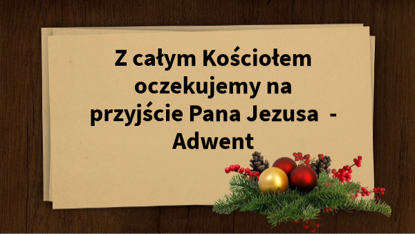 Z całym Kościołem oczekujemy na przyjście Pana Jezusa - Adwent