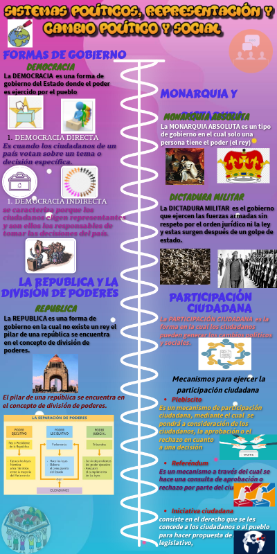 La REPUBLICA es una forma de gobierno en la cual no existe un rey el pilar de una república se encuentra en el concepto de división de poderes.