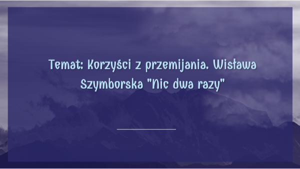 Temat: Korzyści z przemijania. Wisława Szymborska "Nic dwa razy"