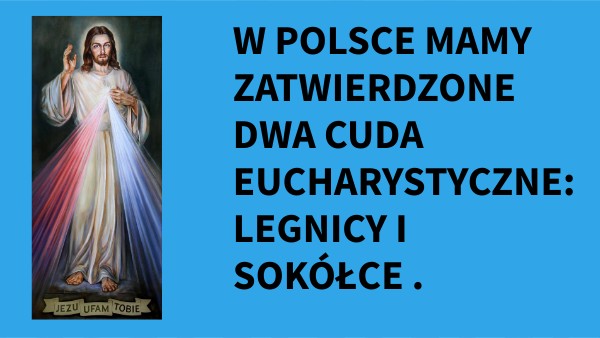 W POLSCE MAMY ZATWIERDZONE DWA CUDA EUCHARYSTYCZNE: LEGNICY I SOKÓŁCE .