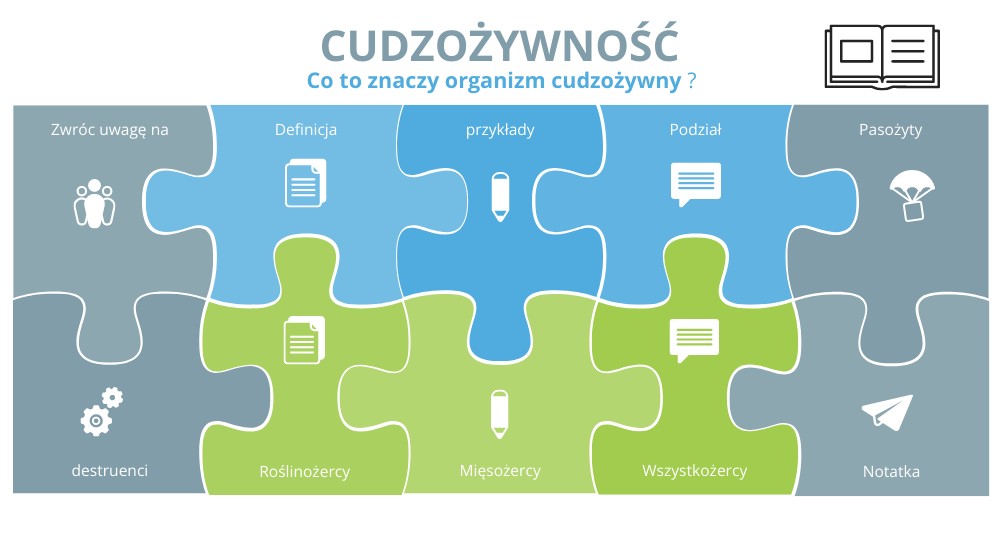 NOTATKA 1. Organizmy cudzożywne pobierają pokarm z otoczenia. Są to: zwierzęta, grzyby, większość bakterii i niektóre protisty. 2. Podział organizmów cudzożywnych: - organizmy zjadające inne organizmy - pasożyty - organizmy żywiące się szczątkami