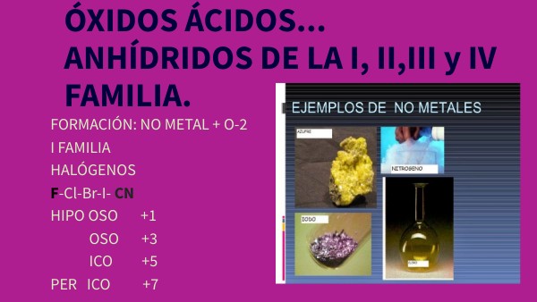 ÓXIDOS ÁCIDOS... ANHÍDRIDOS DE LA I, II,III y IV FAMILIA.