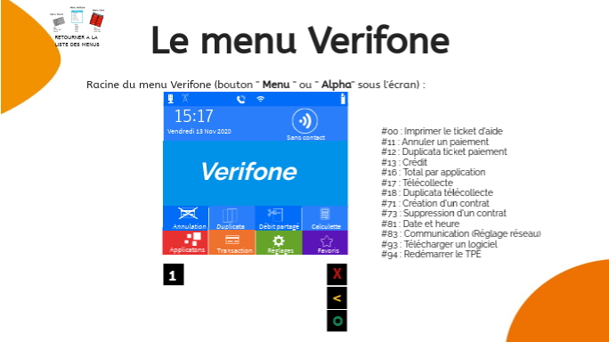 Le menu Verifone