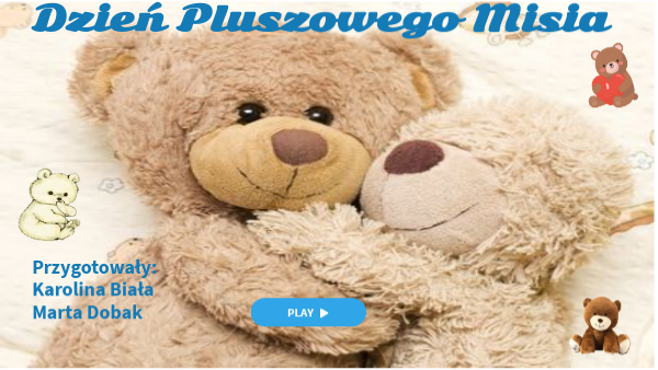 Mały, duży, bury, kolorowy, milutki, z kokardką czy w kubraczku... Każdy posiada bądź posiadał własnego ulubionego misia pluszowego. Jest to jedna z najpopularniejszych zabawek w Europie już od XIX wieku! Miś pluszowy nieodłącznie kojarzony jest z beztroskim czasem dzieciństwa. Wiele razy, pewnie, dla Was był kumplem do zabawy, kompanem podróży, przyjacielem, któremu można wszystko powiedzieć, antidotum na nocne koszmary.Jednakże kariera misia-zabawki rozpoczęła się wcale nie tak dawno… Mianowicie, w listopadzie 1902 r. ówczesny prezydent Stanów Zjednoczonych Theodore „Teddy” Roosevelt polował w jednym z lasów stanu Missisipi. Współtowarzysze prezydenta przeznaczyli na trofeum młodego niedźwiadka. Gdy Roosevelt ujrzał bezbronne zwierzątko, odmówił oddania strzału i kazał puścić wolno niedźwiadka. Epizod ten przedstawił na rysunku Clifford Berryman, a jego grafika ukazała się w gazecie „The Washington Post”. Stała się ona inspiracją dla sklepikarza z Brooklynu, Morrisa Mitchoma do produkcji pluszowych niedźwiadków o nazwie Teddy, za specjalnym pozwoleniem prezydenta.