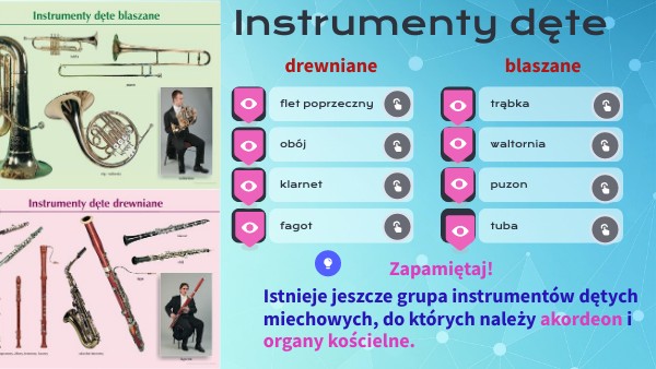 Istnieje jeszcze grupa instrumentów dętych miechowych, do których należy akordeon i organy kościelne.