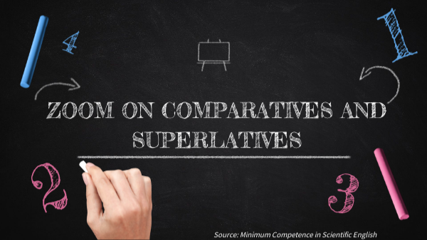 "Comparison is one of the ways of relating ideas and objects to each other. The comparison can either be one of difference or one of similarity. Of course, comparison is frequently expressed by means of grammatical forms such as the comparative and the superlative". (Minimum competence in scientific English 2003) Examples: "Computers are cheaper than too many new artifacts" "Apple computers are the most revolutionary and complete brand that has ever existed".