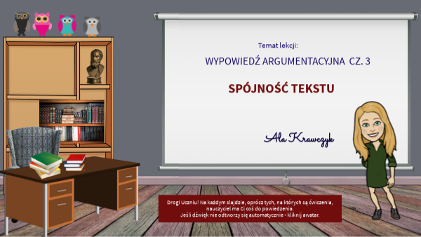 Drogi Uczniu! Na każdym slajdzie, oprócz tych, na których są ćwiczenia, nauczyciel ma Ci coś do powiedzenia. Jeśli dźwięk nie odtworzy się automatycznie - kliknij awatar.