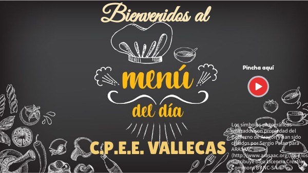 Los símbolos pictográficos utilizados son propiedad del Gobierno de Aragón y han sido creados por Sergio Palao para ARASAAC (http://www.arasaac.org), que los distribuye bajo Licencia Creative Commons BY-NC-SA.