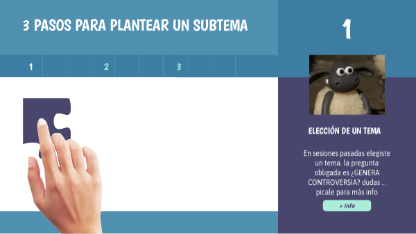 En la elección de tu tema planetaste preguntas, veamos cuales funcionan como subtítulo. Pícale para más info