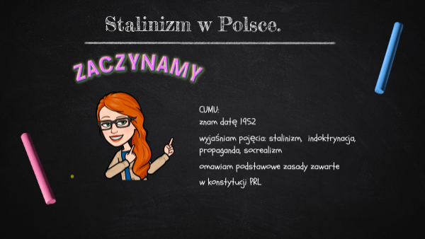CUMU:znam datę 1952 wyjaśniam pojęcia: stalinizm, indoktrynacja, propaganda, socrealizm omawiam podstawowe zasady zawarte w konstytucji PRL