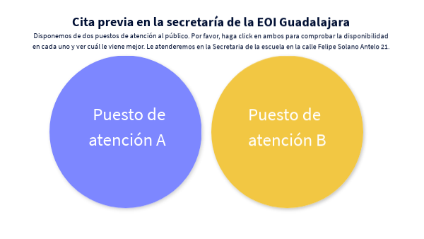 Página de cita previa en cualquiera de los dos puestos de atención de la Secretaría de la EOI Guadalajara