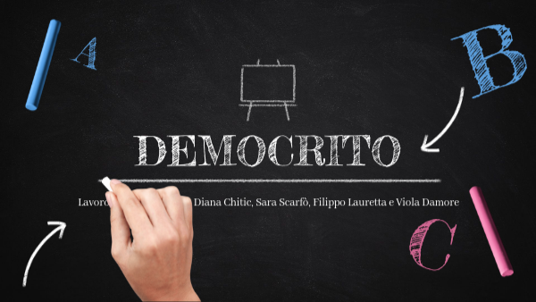 Democrito crede che l'archè sia da ritrovarsi negli atomi, parti infinitesimali della realtà. Fu così il primo della storia, insieme a Leucippo, a postulare la teoria sugli atomi come costituente di ogni cosa, principio fondante di tutta la chimica moderna e di gran parte della scienza su cui si basa la nostra società odierna, intesa in senso mondiale. Secondo Democrito le cose si possono dividere, ma non all’infinito perché altrimenti non esisterebbe non esisterebbe la materia. L’atomo è il punto estremo della materia che non può più essere diviso. Gli atomi sono infiniti e affinché si possano aggregare e disgregare deve esistere il vuoto e anche il movimento. Gli atomi, muovendosi nel vuoto, si scontrano e danno vita a vortici nei quali si formano tutte le cose, che sono aggregati di atomi che poi si disgregano per lo scontro con altri atomi.