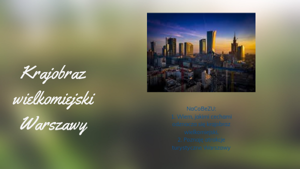 NaCoBeZU:1. Wiem, jakimi cechami odznacza się krajobraz wielkomiejski, 2. Poznaję atrakcje turystyczne Warszawy