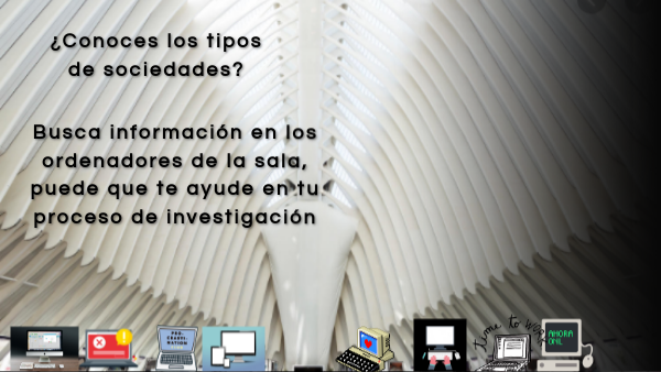 Busca información en los ordenadores de la sala, puede que te ayude en tu proceso de investigación